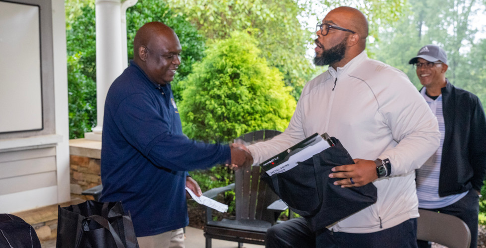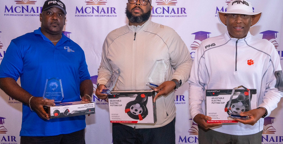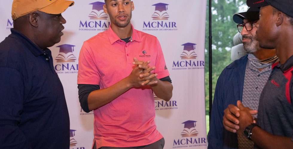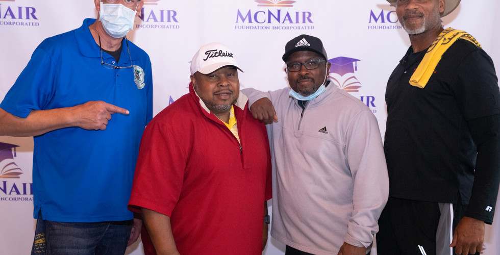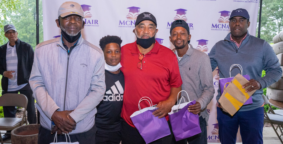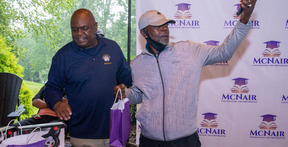 The 2020 McNair Invitational Golf Tournament was a huge success. Although the rain was consistent throughout the day it did not dampen the excitement and enthusiasm. The tournament featured 60 golfers from across the state of North Carolina. Team Greer repeated as champions. The tournament was close but the best dressed contest was the closest with James Gordon edging Rodney Harper. To add to the success there were 23 hold sponsors. A great time had by all along with a powerful message of encouragement by Mark Greer. Thanks to all the sponsors and volunteers. Special thanks to the volunteers from Livingstone University.